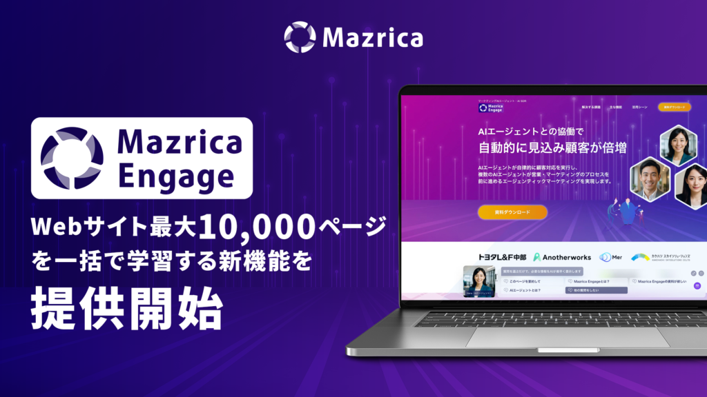 Mazrica Engage、Webサイト最大10,000ページを一括で学習する新機能を提供開始。URL入力のみで下層ページまで自動取得、AIの回答精度向上と運用負荷軽減を実現
