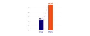 コミュニケーションの取りやすさについて、「満足」「非常に満足」と答えた人の割合が、移転前は22.4%でしたが、移転後は56.9%にアップしました。