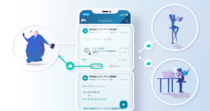 チーム内の同僚をフォローし合うことで、案件の更新情報や活動情報、ナレッジなどの共有をタイムラインで行うことができます。いいね!やコメントを送り合うことで、チーム内のコミュニケーションが活性化され、称賛を送り合う文化の醸成をサポートします。