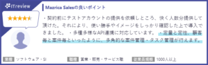 ITreviewにて、Mazrica Salesを実際に利用いただいているお客様よりたくさんのお声をいただいております。