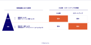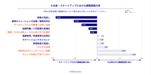 - 大企業は「知識・情報の共有や管理」が課題、スタートアップは「戦略の見直し」が課題という認識