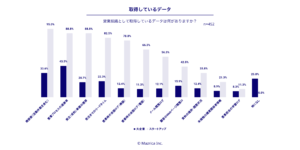 営業に関するデータの取得状況について、全体的にスタートアップの方が取り組みが進んでいる。