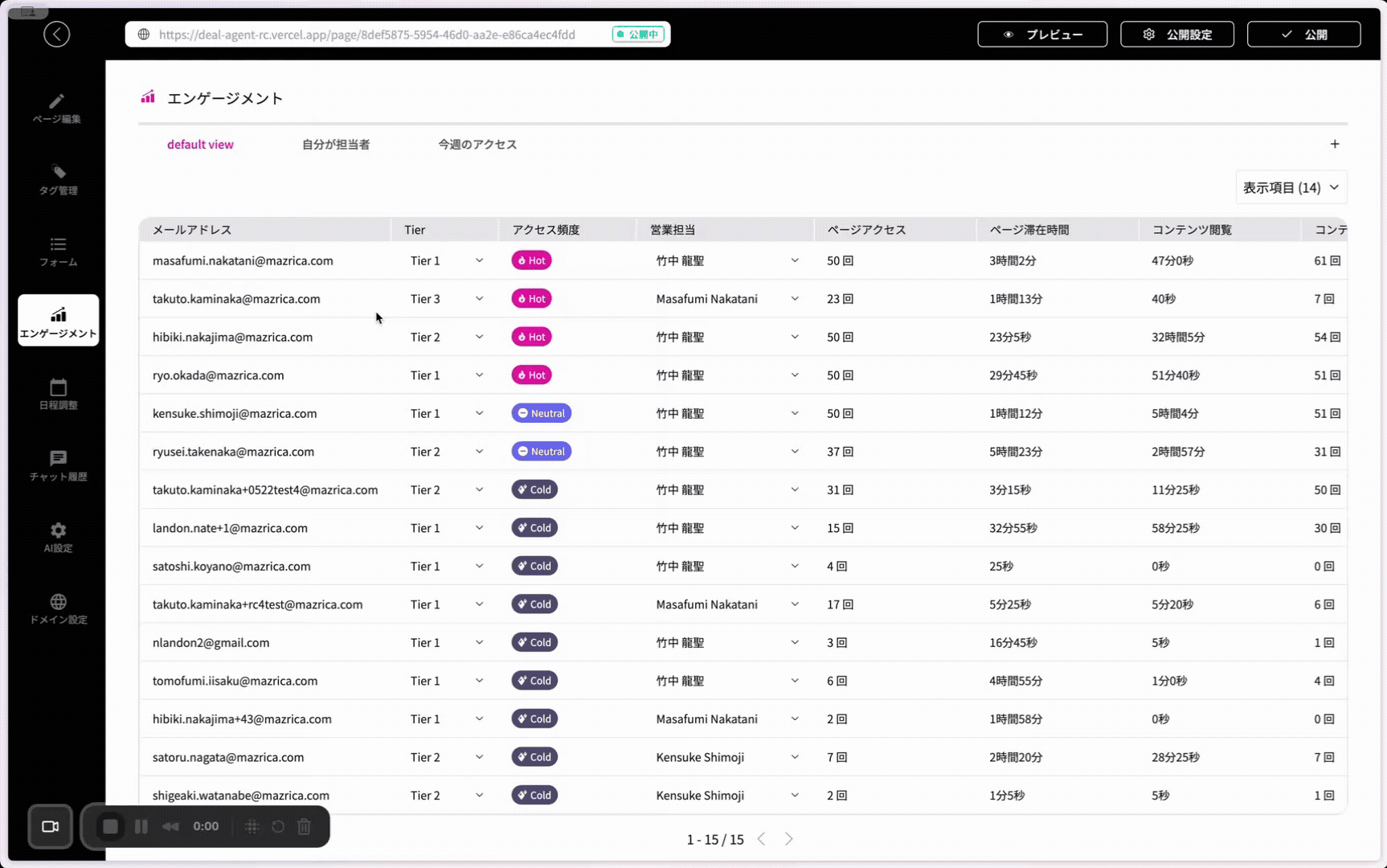 ・コンテンツ閲覧データ:DealAgentで閲覧した資料やページ